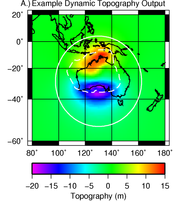 Example dynamic topography output generated from imposing velocity at the surface of the continental keel under Australia.